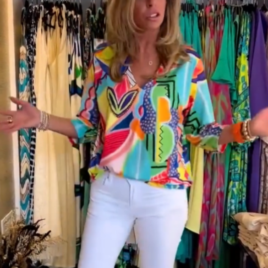 Casual, trendy V-hals top met print voor dames