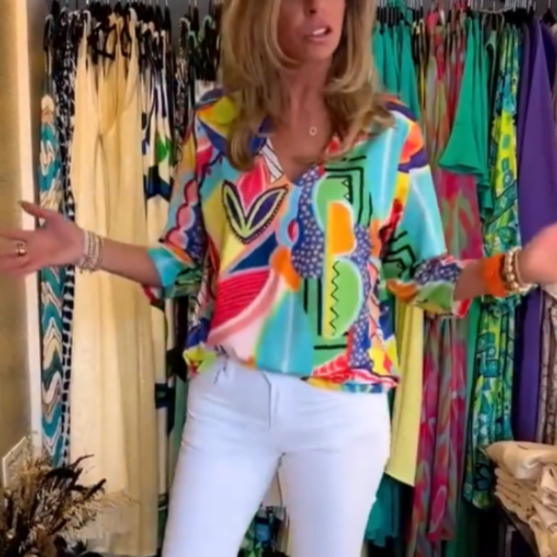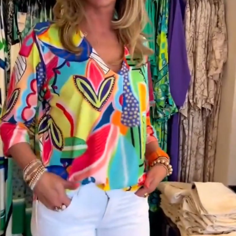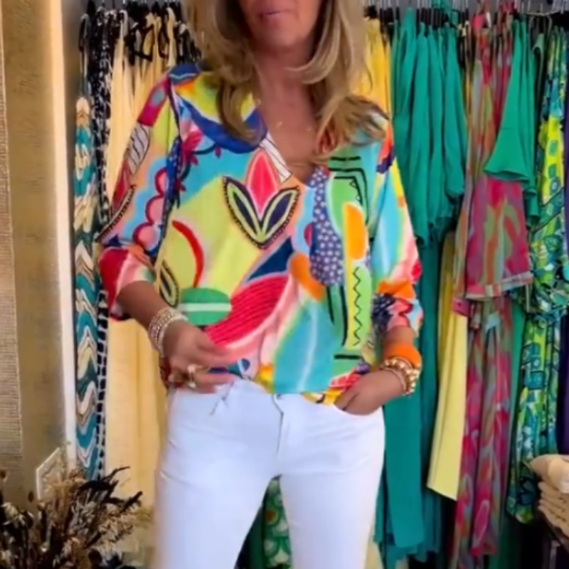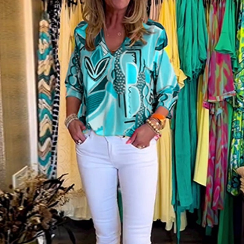 Pakket bestaat uit: 1 * Casual, trendy V-hals top met print voor dames